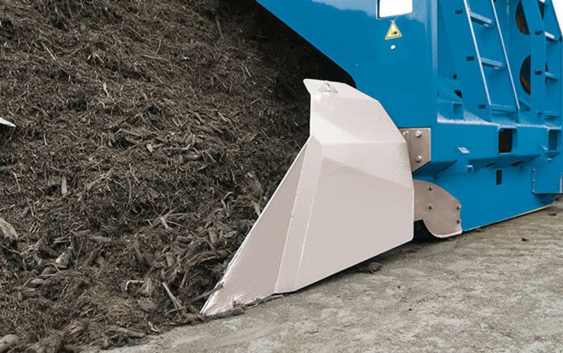 The frame of the BACKHUS A 75 windrow turner is ergonomically designed, so that the material to be turned only comes into contact with the rotor during turning. As the material is discharged, the windrow is simultaneously reformed almost without touching the machine frame.